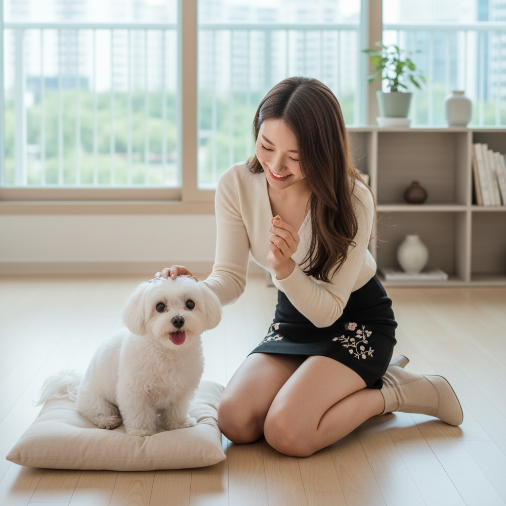 - 긍정 강화 교육: 올바른 행동에 즉시 간식과 칭찬으로 보상하여 좋은 습관을 형성합니다. (예: '앉아', '기다려' 등 기본 명령어 훈련) 문제 행동은 무시하거나 관심을 주지 않는 방식으로 대응합니다.